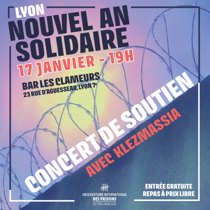 Venez fêter la nouvelle année avec l’équipe lyonnaise de l’OIP dans une soirée festive et engagée autour du respect des droits humains en milieu carcéral.